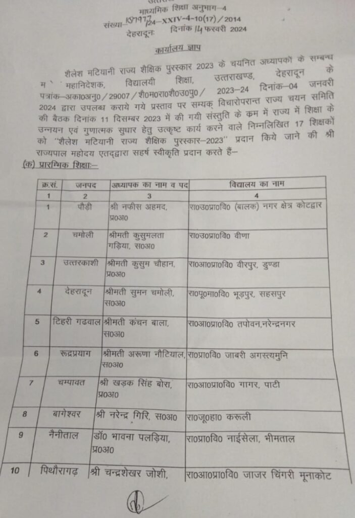 Dehradun, हर बार की तर्ज पर इस बार भी उत्तराखंड शासन ने राज्य के 17 शिक्षकों को शिक्षा के क्षेत्र में शिक्षकों को प्रतिष्ठित शैलेश मटियानी पुरस्कार से नवाज ने का फैसला लिया है. इसमें सबसे ज्यादा शिक्षक प्राइमरी से हैं.